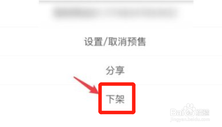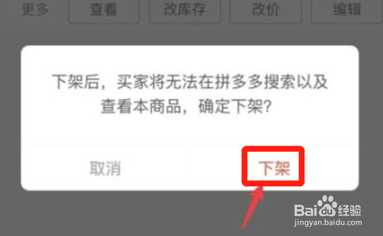 4、第四步,弹出选项,点击下架的选项,这样就完成商品下架了。如下图所示